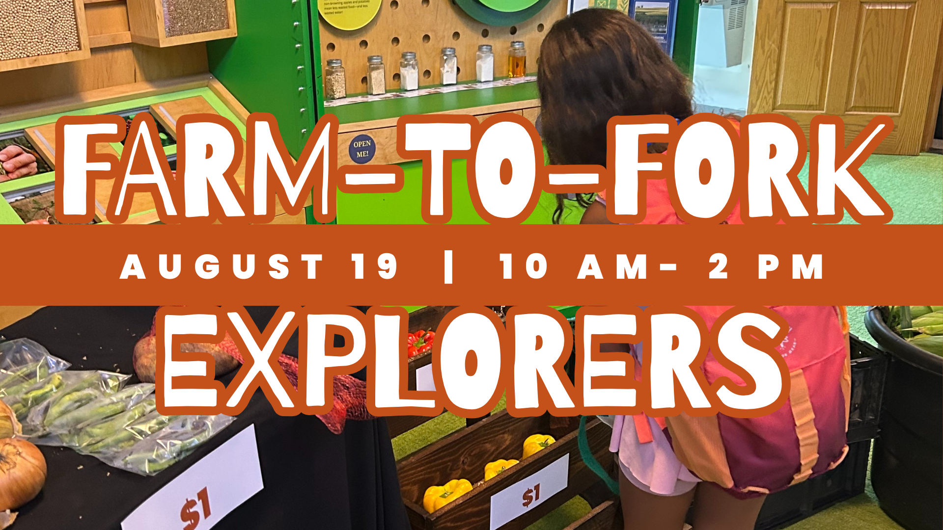 Farm-to-Fork Explorers Wednesday, August 19, 2026 10:00 AM 2:00 PM Google Calendar ICS Tickets! Join us for a delicious adventure into the journey of our food!Enjoy taste testing and explore how fresh ingredients travel from the farm to our table. It's a fun and tasty way to learn about farming, food, and healthy eating.General Public: $10Kids Club Members: FreeLearn more about Kids Club here!School Groups: $10/StudentLearn more about group visits here! Purchase Tickets Here!